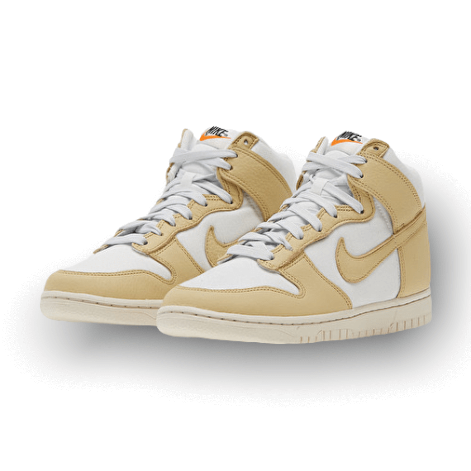 Deze Nike Dunk High komt met een witte bovenkant, gecontrasteerd met een aardse beige kleur die de getrommelde leren overlays markeert, inclusief de Swoosh logo’s op de laterale en mediale zijkanten. De tussenzool aan de onderkant krijgt ook een lichte zeil-getinte afwerking, waardoor het paar een vintage uitstraling krijgt. Het ontwerp wordt gecompleteerd door Nike branding details zoals de tong labels en het nieuwe Certified Fresh motief op de binnenzolen.